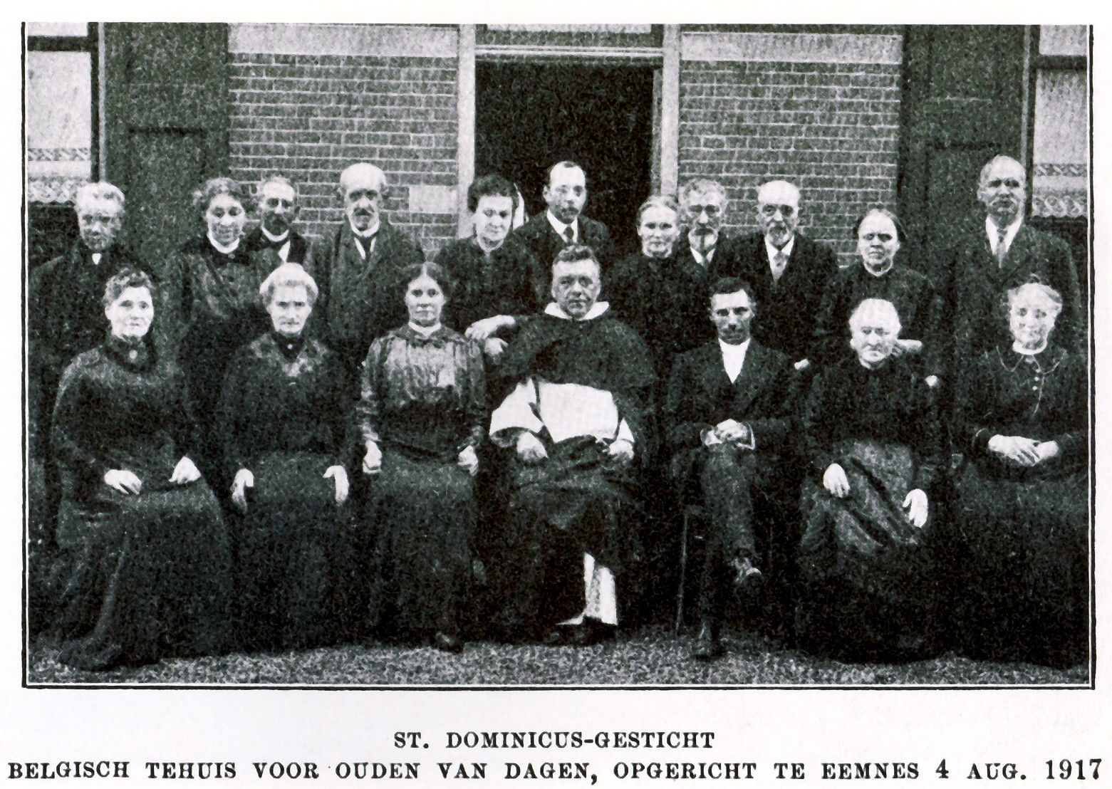 31. Tijdens de Eerste Wereldoorlog werd ten behoeve van de ouderen onder de gevluchte Belgen de villa op Wakkerendijk 44 gehuurd en ingericht als bejaardentehuis. Het werd het "St.-Dominicusgesticht" genoemd. De leiding van het tehuis had bakker André Verdonck met zijn echtgenote. Op deze foto zitten ze beide aan weerskanten van pater Thomas van den Brink o.p. uit Laren, die de aalmoezenier van de Belgen was. Deze schreef een boekje over zijn werk: "De Belgen in Nederland tijdens de Oorlogsjaren", waarin de hier afgedrukte foto voorkomt. Het huis, waar dokter Weitjens een verdieping op liet bouwen, is na hem bewoond geweest door de dokters Warmoltz, Duijster, Snijder en Casparis.